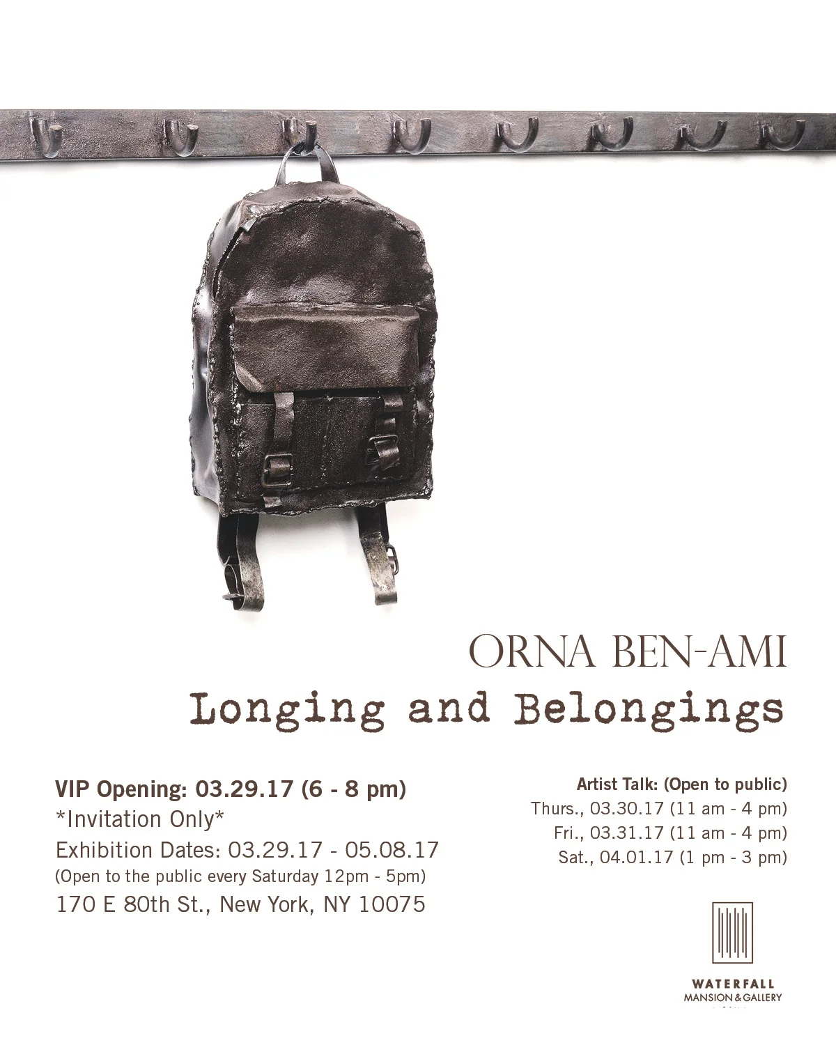 From March 29th through May 8th, 2017, Waterfall Mansion and Gallery will present the major solo exhibition of the acclaimed and renowned international artist, Orna Ben-Ami.