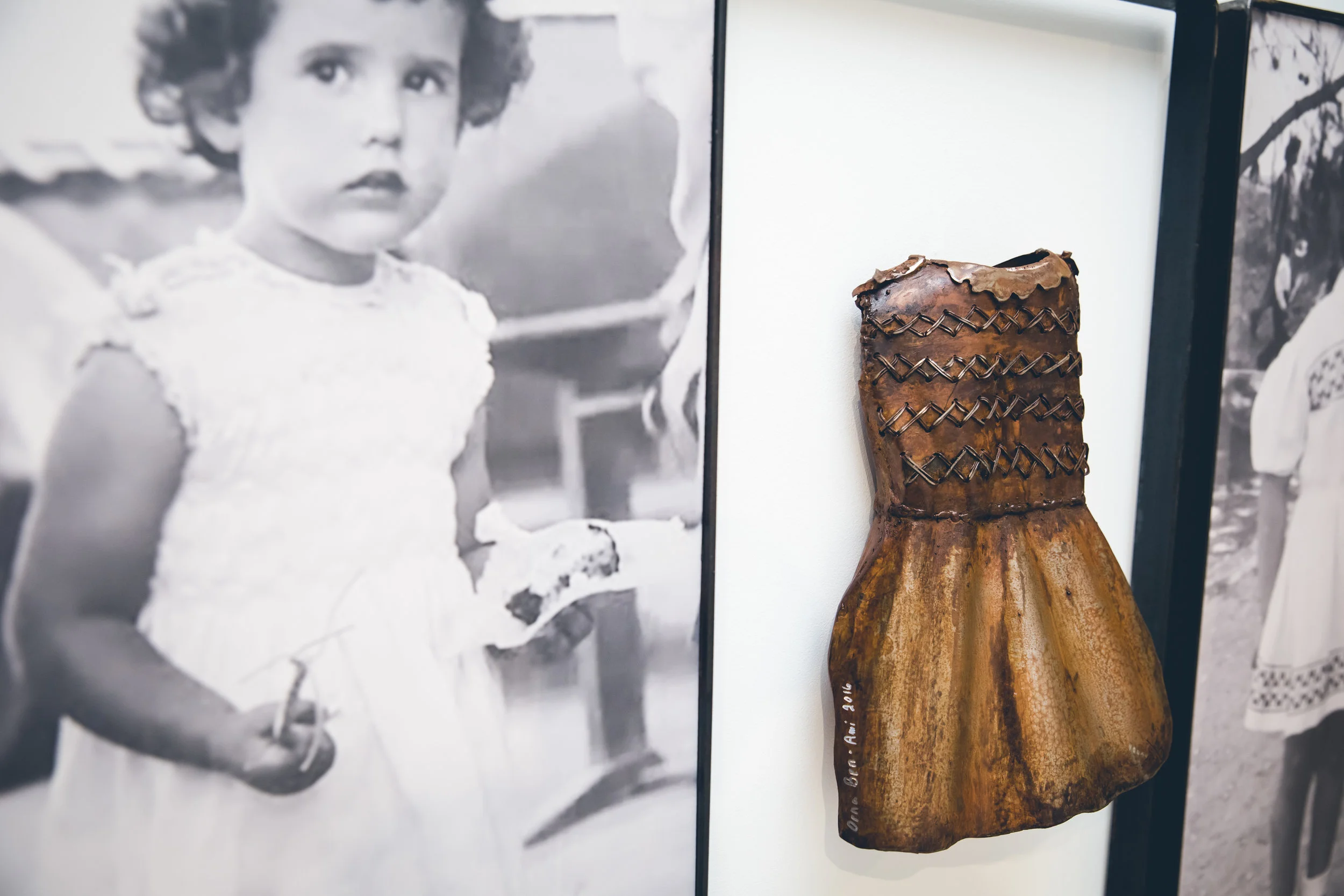 Israeli artist, Orna Ben-Ami, creates highly symbolic pieces originated from deeply personal meanings and shifted to universal subject of our lives. Orna Ben-Ami revisits the stories of her own life and other lives by sculpturing their belongings. She shines the lives with a longing for eternal memories. With Ben-Ami’s remarkable workmanship on the material, the solid iron yields to her hands and the welding becomes almost sewing. The sculptures made from matte-finish iron remind of a drawing in the space or soft sculptures. The simplified lines or background to highlight the essence of our lives offer enough imaginary space to invite the viewers to fill in their own memories. Her personal memory recalls collective memories and the collective memories of our history become a part of our own memory in a soft manner without imposing it. The various photographic prints juxtaposed with the sculpted belongings from the families to the refugees are a meaningful trigger. The viewers are able to reflect on the weight of their lives and evoke empathy towards each other’s lives in the era of global chaos.